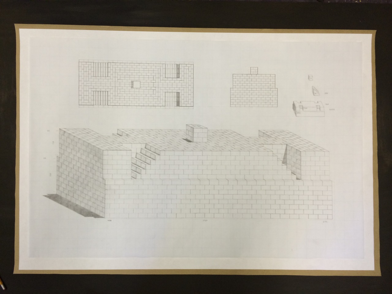Seeking funding for labor/materials and a piece of welcoming land anywhere in the world. It will be hollow so 6000 blocks solid is only notable for its mathematical beauty. During the equinox, shadow passes over a step each hour. Lines on the roof delineate time using the shadow of the cube. The perimeter is 32'x 9.333' and hollow it will require less than 2000 cinder blocks. Ideally I'd like a hole in the foundation where we can dig to the center of the earth but if adding some kind of practicality without compromising form like McDonald's office space or whatever in order to get it accomplished, just ask.